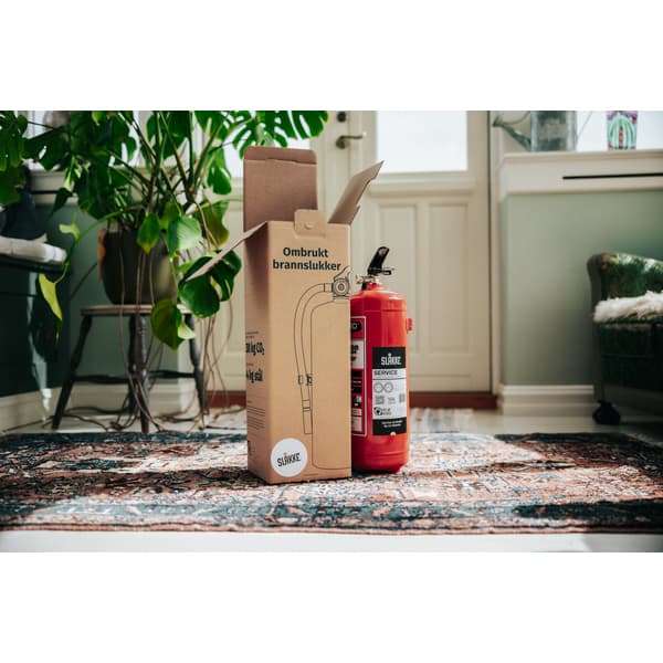 Pulverapparat med ABC pulver i slukkeklasse 55A kan beskrives som et allround produkt, velegnet til slukking av de fleste typer branner. Kan benyttes imot de fleste typer branner. Organiske materialer (papir, tekstiler, tre etc.) Brennbare væsker (olje, bensin, maling etc.) Gas Elektriske anlegg inntil 1000 Volt. Ved å velge en gjenbrukt brannslukker sparer du samfunnet for 38 kg CO2. Utdaterte og gamle brannslukkere tas inn i vår serviceprosess og returneres tilbake til kunden, like god som ny. Service er utført i henhold til NS 3910.