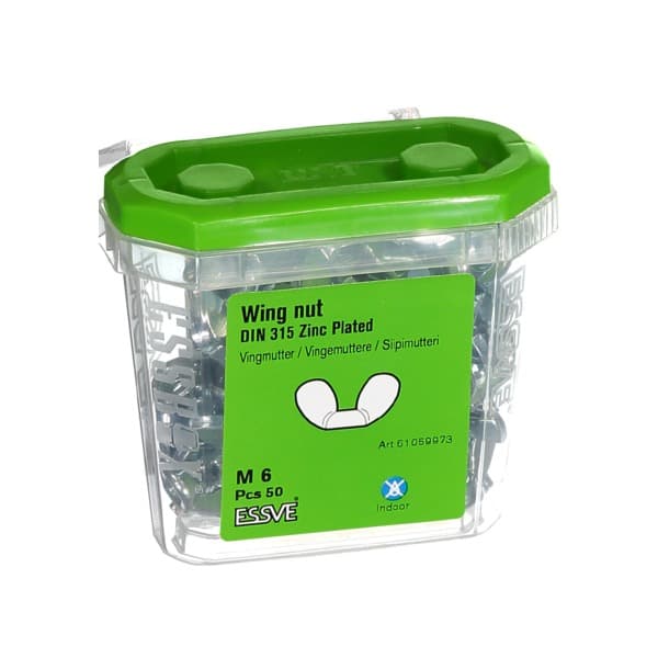 Varenummer: 47123277EssveVINGEMUTTER M6 DIN 315 FZB -50, BLANKFORSINKET STÅL