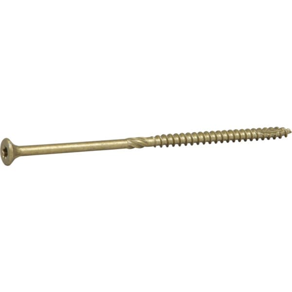 Treskrue ESSDRIVE er beregnet for montering og sammenføyning av trevirke utendørs. Skruens patenterte spiss sørger for at skruen griper umiddelbart. Hodeformen gir en perfekt finish uten sprekker eller fliser. Fresespor på stammen gir et lavt innskruingsmoment og bidrar til økt klemkraft. Skruer som er 70 mm eller lenger har et ekstra fresespor etter hovedgjengen, som bidrar til mindre motstand og lettere montering. ESSDRIVE er spesielt god i vanskelige eller unaturlige posisjoner hvor skuldre og ledd får uønsket belastning. Produsert i sterkt og fleksibelt stål, med Corrseal overflatebehandling, korrosjonsklasse C4. Anbefalt turtall: 400-1200/min