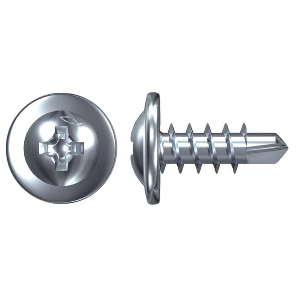 fischer Montasjeskrue ruspert med flatt hode og PH spor. Med borespiss.For utendørs beskyttet bruk for montering i stål.