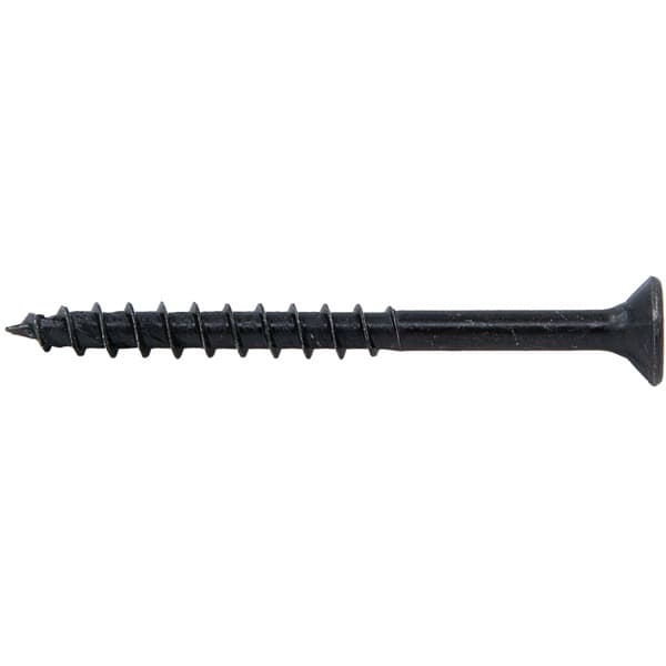 Svart sortfosfatert treskrue med senkhode, TX spor og del- og helgjenge. Til innendørsbruk ved montering av sortmalt trevirke.