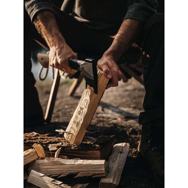 Norden er en serie økser som bygger på Fiskars sin unike ekspertise opparbeidet gjennom århundrer, med det ypperste innenfor teknologi og utvikling. Skaft i høykvalitets 'tumble' lakkert hickory tre. Sikker feste av hode, og solid FiberComp beskyttelse mellom hode og skaft. Dobbelt herdedet blad med optimal bladstyrke. PTFE belegg på bladet reduserer friksjon og beskytter bladet. Liten universaløks for turer i skogen, camping og hugging av opptenningsved. Den kompakte størrelsen gjør den ideell som en følgesvenn i sekken på turer i skog og mark.