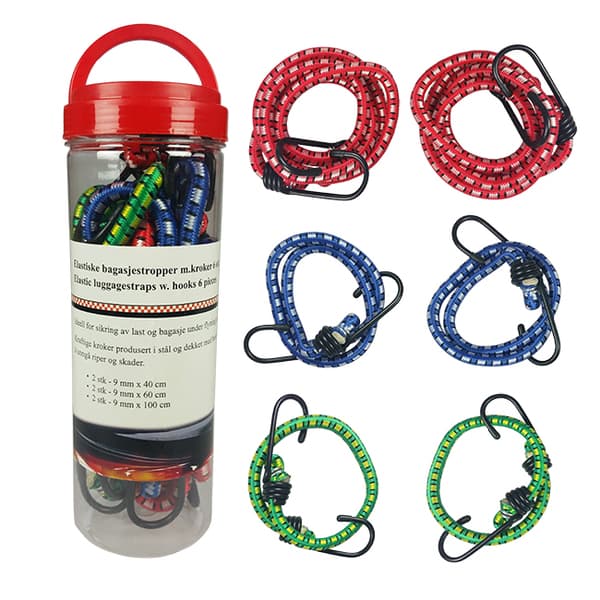 Varenummer: 56150553PRIVATE BRANDSekspakning med bagasjestropper i praktisk oppbevaringsboks. 9 mm elastisk bånd med kraftige gummierte kroker. Perfekt for sikring av last og bagasje ved flytting og transport. Innholder: 2 x 40 cm, 2 x 60 cm og 2 x 100 cm bagasjestropper.