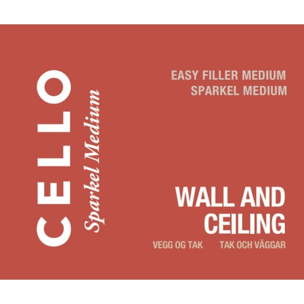 Varenummer: 57829255CelloCello Lettsparkel Medium ferdiblandet lettsparkel til sparkling av gips, og til å sette remse i gipsskjøter,helsparkling av gips, betong, lettbetong i tak og på vegg innendørs i tørre rom. Lett å påføre og lett å slipe, samt overmalbar med både vann- og oljebaserte malinger. Produktet er Svanemerket.