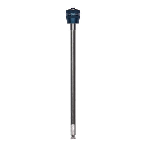 Forlengerstang 300 mm / 6" PC Plus-spindel 7/16" 11 mm. Power Change Plus-systemet gir bedre holdbarhet og nøyaktighet enn forgjengeren. Det forsterkede skaftet gir mindre avvik, mindre slark og større nøyaktighet. Takket være senterboret gir det dessuten bedre styring. Selvspenningssystemet kobler fra hullsagen med et enkelt klikk, noe som gir rask og enkel pluggutløsning. Systemet er egnet som selvspennende overgang mellom elektroverktøy og hullsager. Den kan brukes med alle kablede og batteridrevne driller.