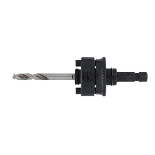 Holder for hullsager LBH-2 diameter 32-210 mm. L10 har gjenget feste for hullsagen samt sekskantfeste for maskin innfestingen. Medbringerstiften klikkes fram for raskt bytte av hullsag.