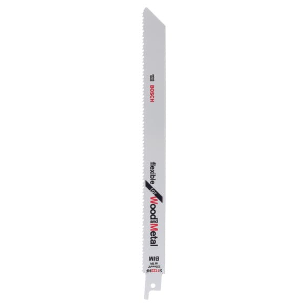 S 1122 HF Flexible for Wood and Metal bajonettsagblad gir jevn skjæring i tre og metall. Standard materialtykkelse (0,9 mm) med en standard lengde (225 mm) gjør bladet egnet til jevn skjæring. BIM-basen (bimetall) kombinerer et HCS-blad (høykarbonstål) med en HSS-tannstripe (høyhastighetsstål) som gjør bajonettsagbladet optimalt til bruk ved pallereparasjoner. Bladet har medium tannavstand (2,5 mm) og skjærer alle myke spiker og festemidler som er vanlige i pallekonstruksjoner. Det har standard lengde på 225 mm, som gir en skjærekapasitet på opptil 175 mm. Til bruk sammen med bajonettsager med 1/2" universelle skaftsystemer. BIM vigget, frest Til reparasjon av paller, treverk med spiker/metall (<175 mm), metallplater, rør, aluminiumsprofiler (3-12 mm), fleksible kantkutt