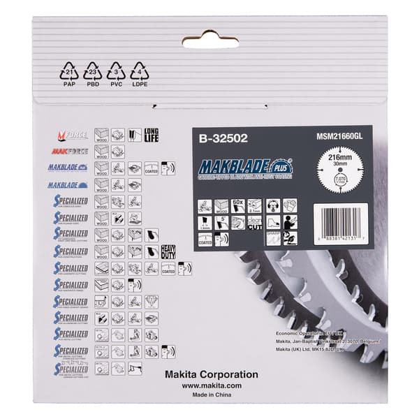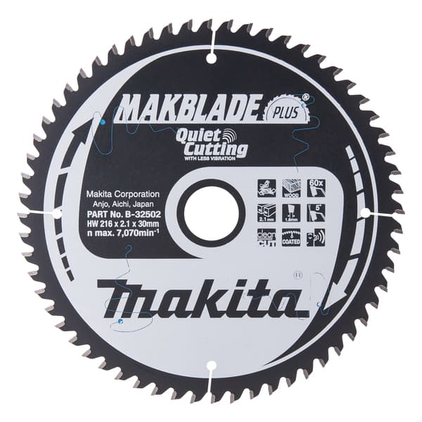 Varenummer: 60123793MakitaMakita Sirkelsagblad 216x20x44T B-32502 Makblade Plus Tre