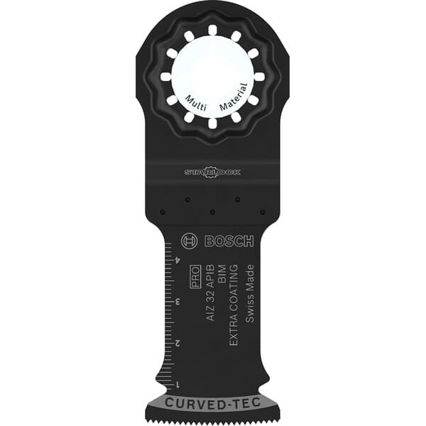 Varer opptil 5x lenger enn et Bosch AIZ 20 AB-multikutterblad - Håndverkere som verdsetter multikutterens evne til dykkutt, jevn skjæring og nøyaktige utskjæringer trenger også et allsidig blad som er utmerket for disse oppgavene. PRO AIZ 32 APIB er ikke bare allsidig, men den tilbyr også en enestående levetid. PRO AIZ 32 APIB er et dykksagblad laget av bimetall for styrke og holdbarhet. Tennene er belagt for ekstra holdbarhet. Bladets Curved-Tec-design gjør den perfekt for dykkutt uten oppflising. Starlock montasje for optimal kraftoverføring og bekvem bytting av bladet innen 3 sekunder