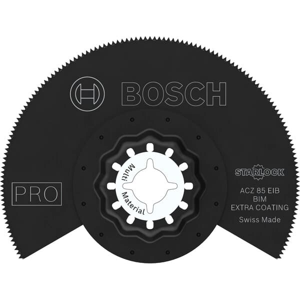 Varer opptil 1,5x lengre enn et Bosch ACZ 85 EC-multikutterblad - PRO ACZ 85 EIB Segmentblad er et flott universalblad for alle typer interiør- og fjerningsarbeid og kan lage brede og rette kutt i alle typer slipende treprodukter samt gips- og fiberplater og ikke-herdede metaller. PRO ACZ 85 EIB Segmentblad er laget av bimetall for styrke og holdbarhet. Tennene er i tillegg belagt for ekstra holdbarhet. Bladet har en liten tanngeometri som gir problemfri skjæring i ikke-herdede metaller. Starlock montasje for optimal kraftoverføring og bekvem bytting av bladet innen 3 sekunder