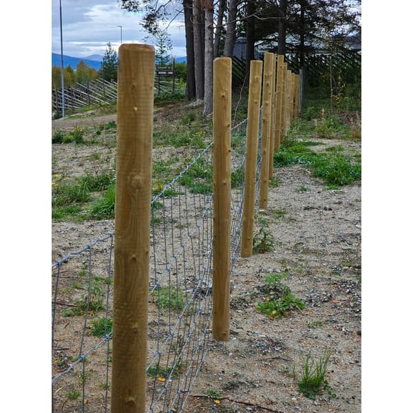 Sylinderdreide og spissede furu gjerdestolper impregnert i klasse A. Gjerdestolpene har lang levetid og tåler jordkontakt. Lengde er 175cm og Diameter er Ø=8cm. Leveres enkeltvis eller i bunter av 154 stk.
