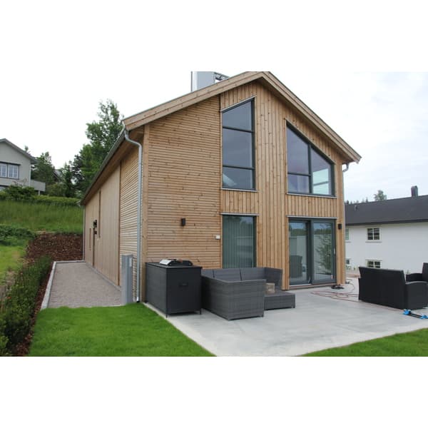 Gran 19x148 D-fals 60 gr 3" spor gir et moderne uttrykk på boligen din. Den skrå falsen på 60 grader gir god vannavrenning, mens sporet midt på bordet gir illusjonen av to smale kledningsbord - tilsvarende 3 tommer. Dette fir en elegant og stram fasade som passer både nybygg og rehabilitering,