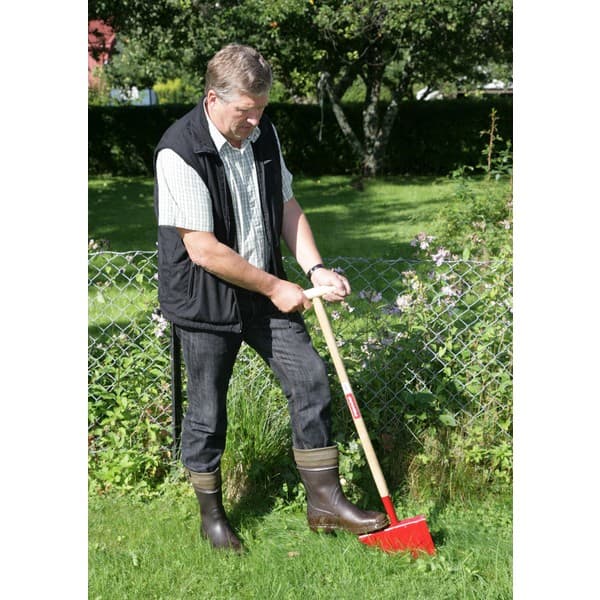 Til avgrensing av blomsterbed og skjæring av jevne kanter i gressplenen. Det spisse bladet gjør det lettet å presse ned bladet, og trekkes bare halvt opp igjen av jorden før neste stikk slik at det er lett å holde en rak linje hvis ønskelig. Treskaft med T-Håndtak. Lengde: 104 cm Vekt: 1130 g.