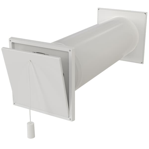 Komplett ventil med rund gjennomføring. For tilførsel av frisk luft i boliger med behov for ventilasjon. Anbefalt plassering er høyt på vegg og helst over en varmekilde ved gulv. Innvendig klaffventil med tre trinns regulering av luftmengde. Utvendig sjalusirist med insektgitter. Justerbar lengde 60-360 mm.