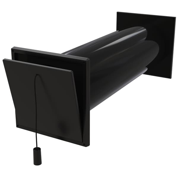 Komplett ventil med rund gjennomføring. For tilførsel av frisk luft i boliger med behov for ventilasjon. Anbefalt plassering er høyt på vegg og helst over en varmekilde ved gulv. Innvendig klaffventil med tre trinns regulering av luftmengde. Utvendig sjalusirist med insektgitter. Justerbar lengde.