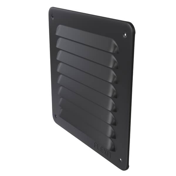 Sjalusirist i svartlakkert stål 155x155. Med flat bakside og insektsgitter i syrefast stål.